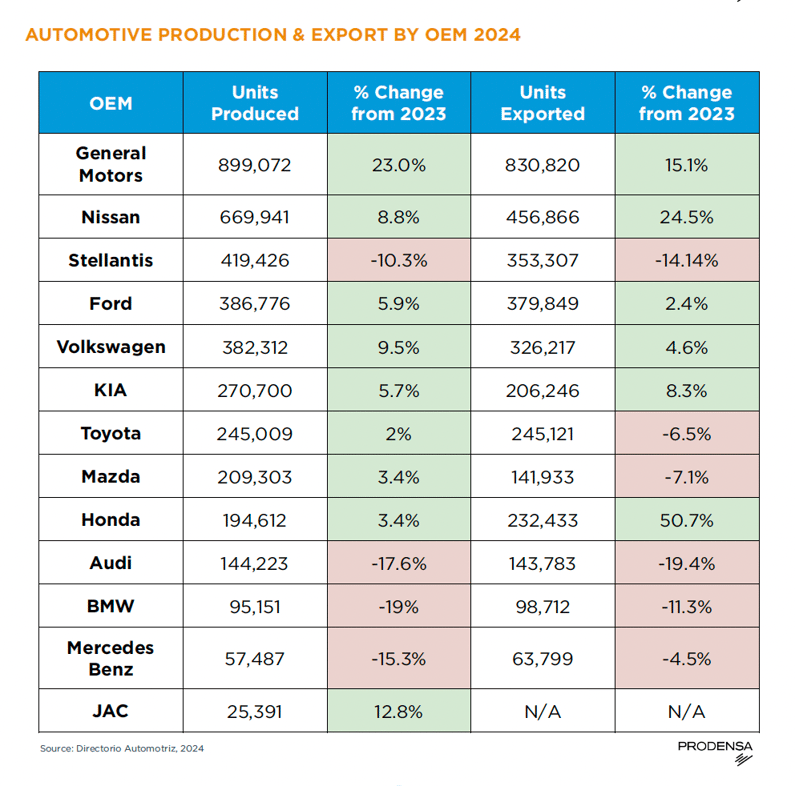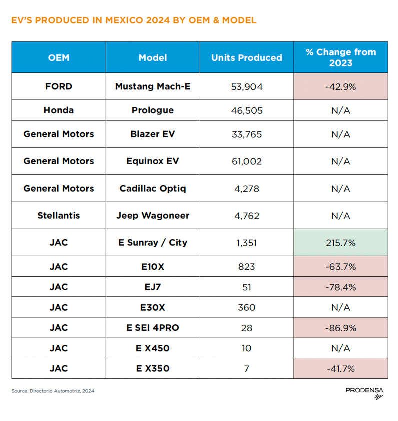 EV's Produced in Mexico by OEM & Model 2024