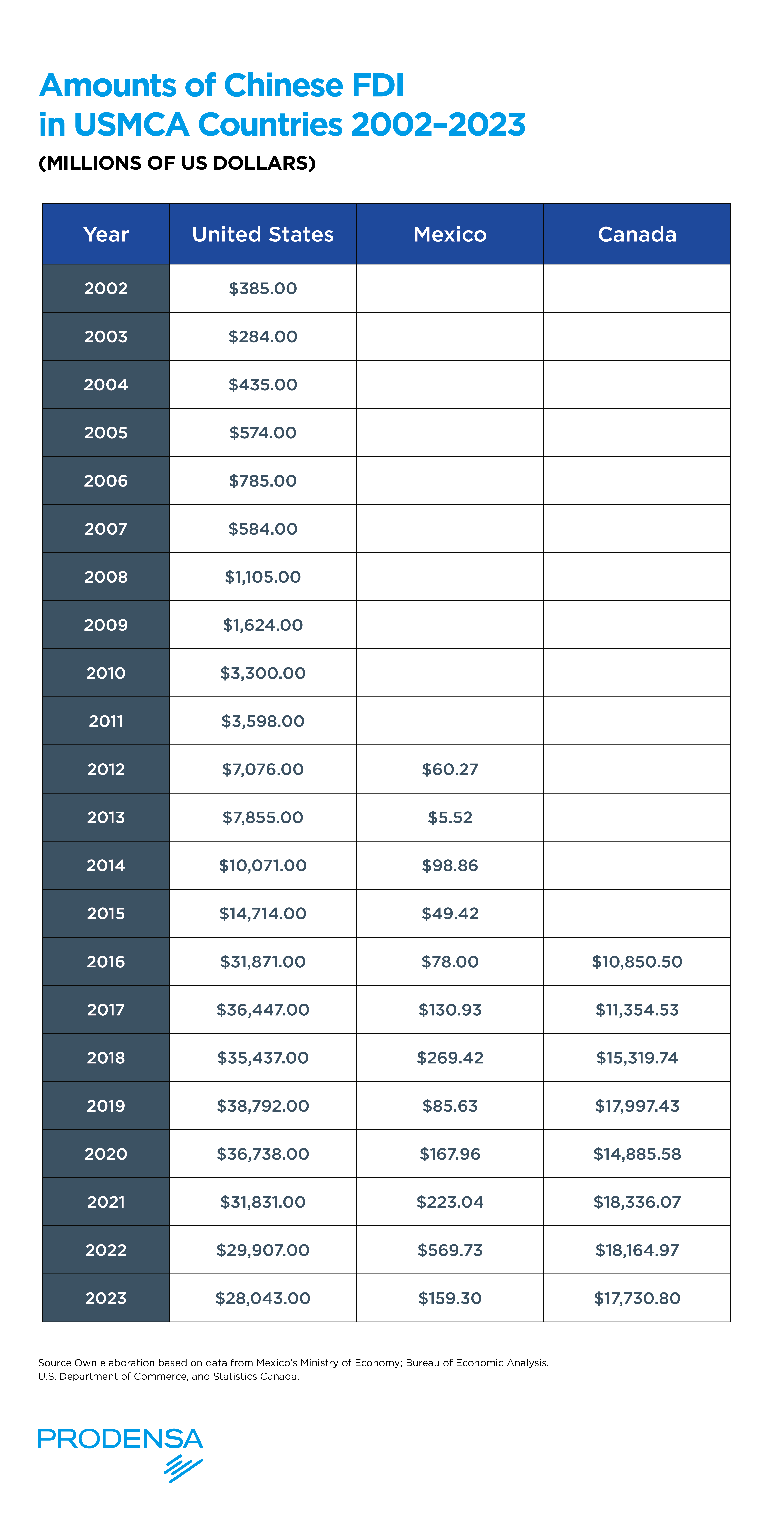 Data from the past 20 years clearly demonstrates the disparity in the distribution of Chinese FDI among the three USMCA countries. Since 2002, the United States has attracted over $269 billion in Chinese investments, an impressive figure compared to Canada’s $124.6 billion and Mexico’s modest $1.68 billion during the same period.