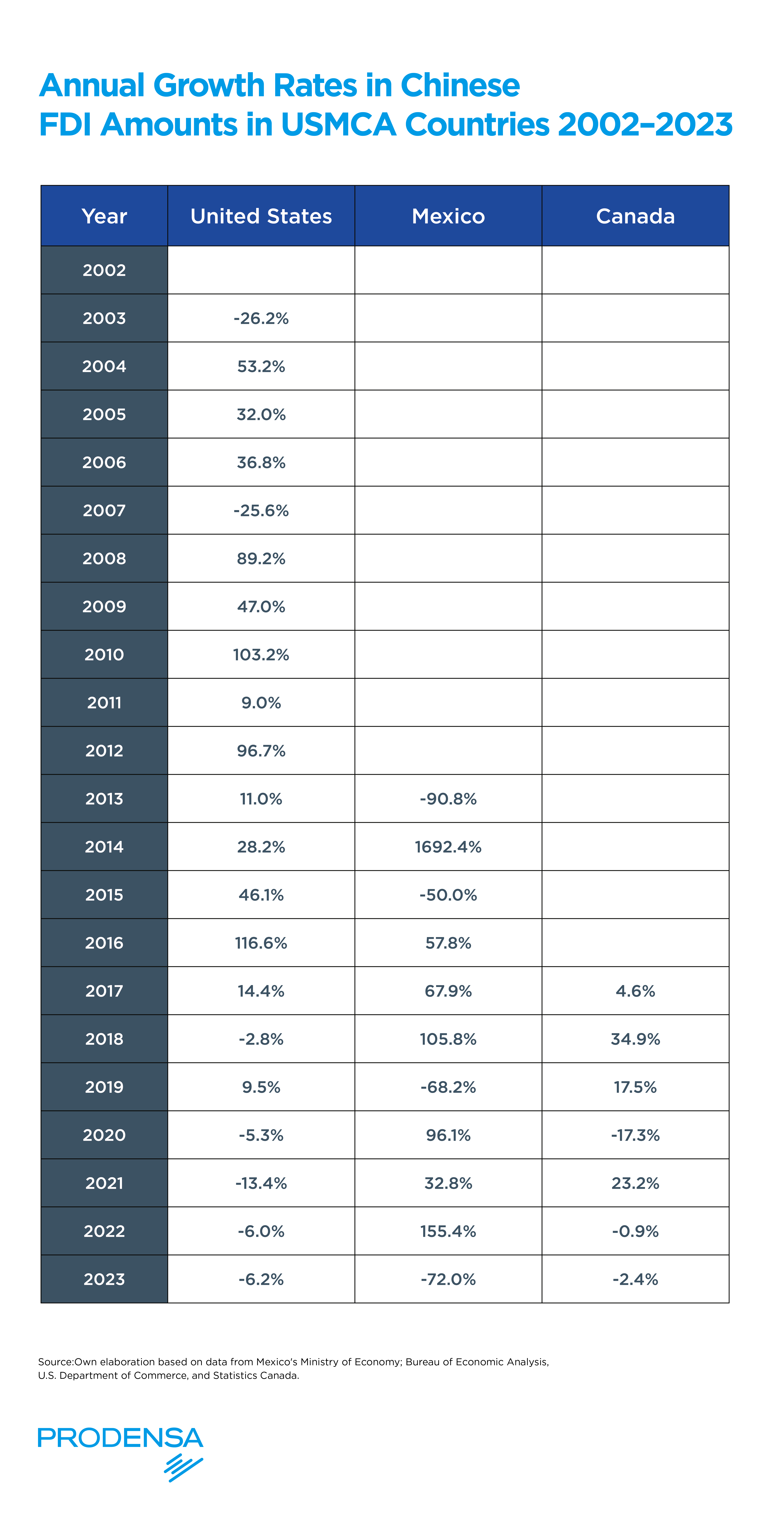 In fact, the most recent figures from 2023 reveal a 72% drop compared to the previous year, confirming that there is no consistent flow of Chinese investment into Mexico.