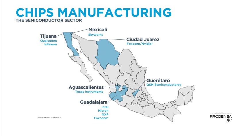 Firms like Intel, Skyworks Solutions, Texas Instruments and Infineon Technology are already in Mexico and building capacity in the microprocessor R&D, testing and manufacturing spaces. Foxconn has established a headquarters in Mexico, and TSMC is in discussions to commence operations in the country. Arizona State University has partnered with the government of Mexico to boost training and capacity to take on more semiconductor manufacturing and testing work.