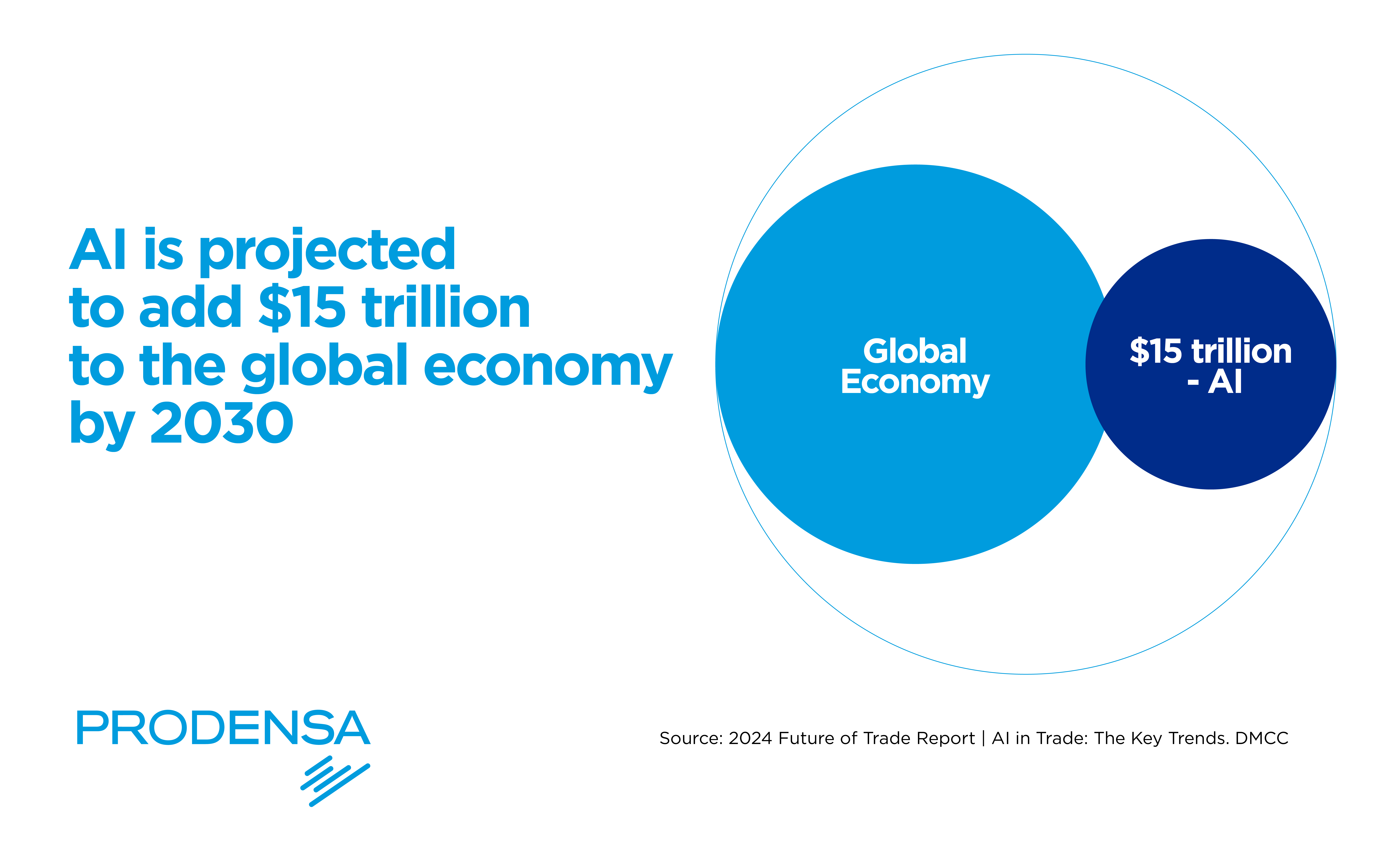 The impact of artificial intelligence (AI) on global trade extends far beyond technology, transforming every industry and aspect of trade. AI is projected to add $15 trillion to the global economy by 2030 and is revolutionizing sectors such as supply chain management, market analysis, and customer interaction.