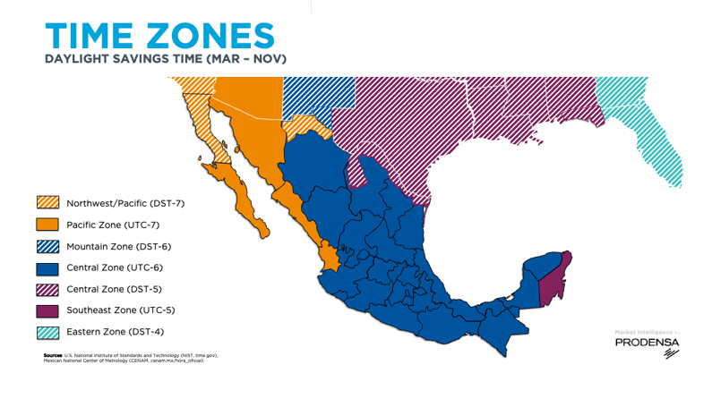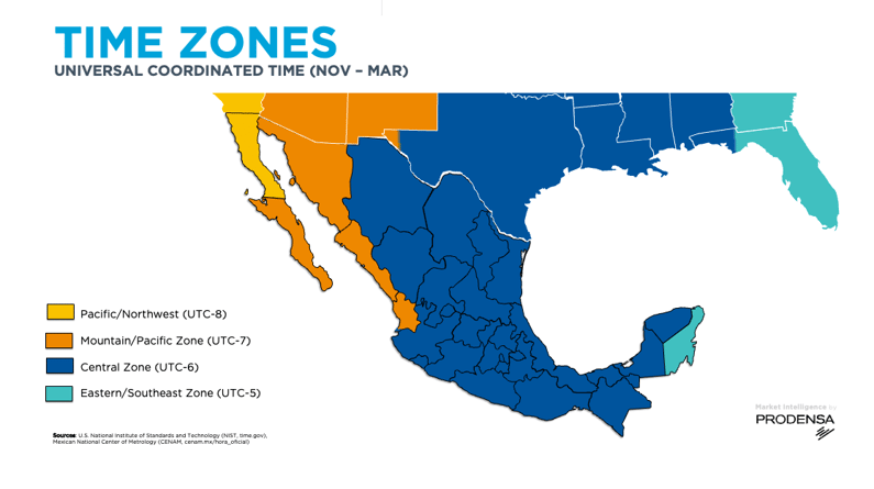 - From November through March, Mexico and the United States are fully aligned in time zones—an important consideration for companies doing business in Mexico that coordinate cross-border operations or meetings.