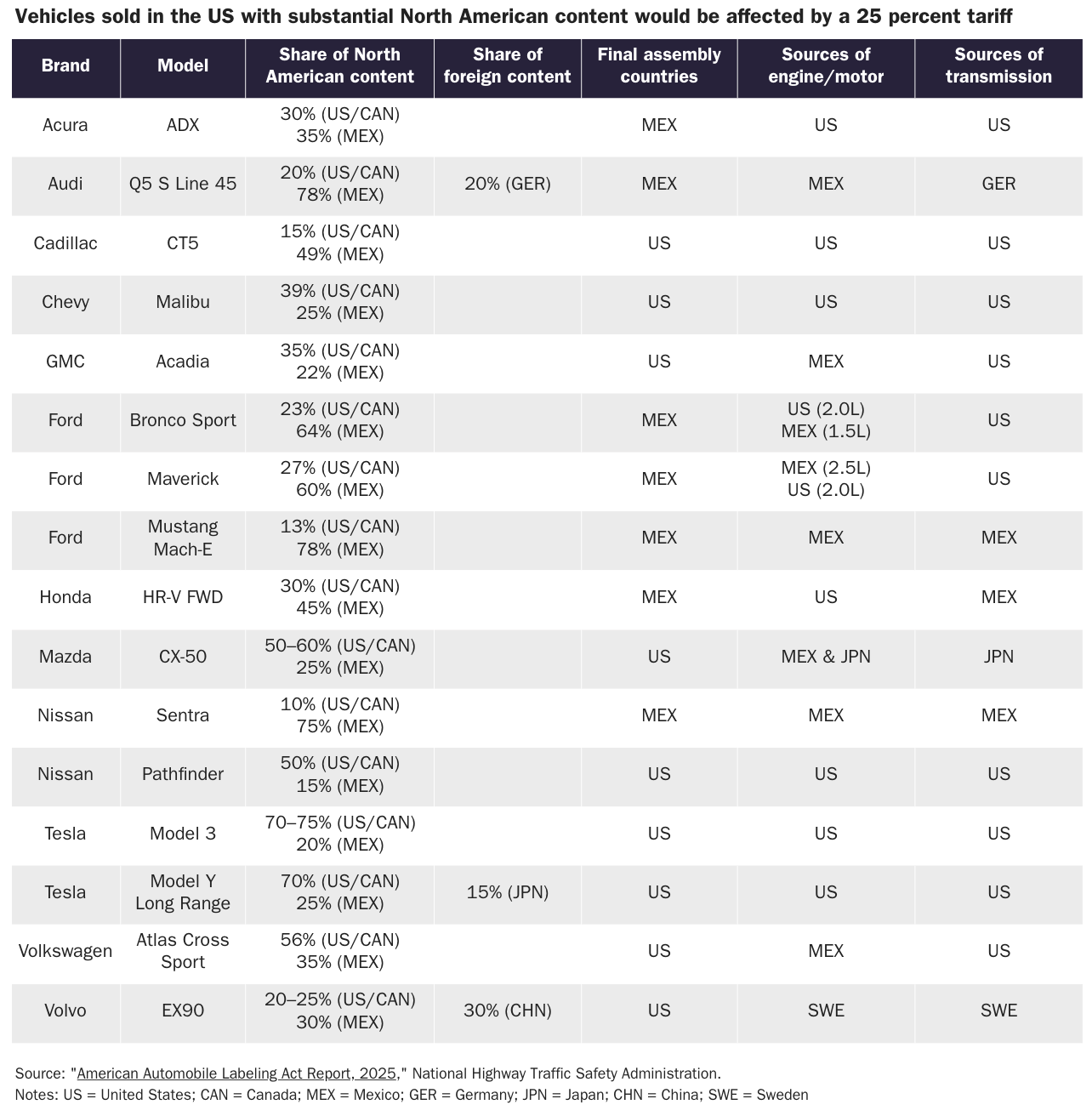 - Offset benefits apply only to U.S.-assembled vehicles, not those built in Mexico or Canada