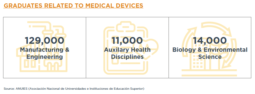 Universities are adapting career paths in biomedical engineering, prosthetics manufacturing, chemical pharmaceutical biology, among others. For example, in the 2023-2024 academic year, over 164,000 students graduated from careers related to medical device manufacturing.