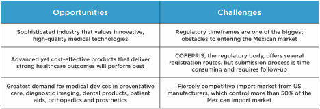 Many opportunities exist in Mexico that point to continued growth in the medical device sector. Mexico’s geographical location allows companies to respond to global demands and take advantage of shifting market needs by manufacturing close to the top global market, the United States.