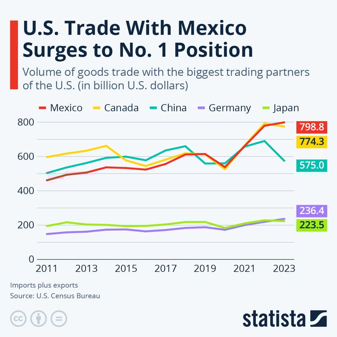 - Highly Integrated Supply Chains: Approximately 40% of the value of finished goods imported from Mexico to the U.S. originates from American inputs, highlighting the strong integration of regional supply chains.