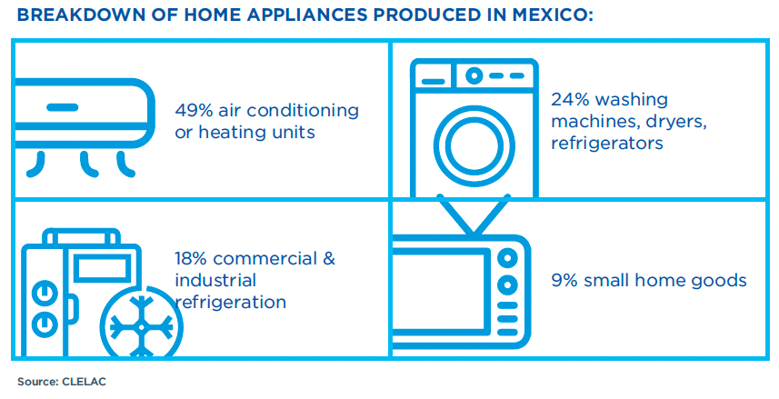 The home appliance industry in Mexico is broken down by types of appliances produced:
