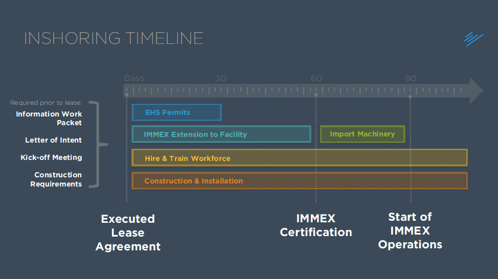 Speed-to-market can be crucial for suppliers considering nearshoring operations with their clients. A manufacturing company with a straight-forward production process and materials could be up-and-running in as little as 4 months.
