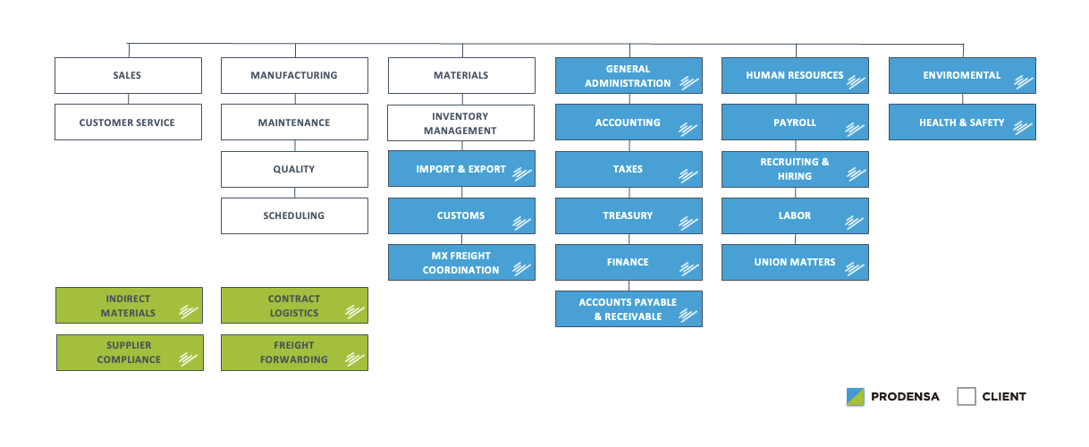 Shelter service operators act as co-operations of your manufacturing operation in Mexico. Activities are governed and tracked against a strict Task Responsibility Matrix. There is a lot of collaboration between the corporate and operations teams; it's important to find partners you can trust in Mexico.